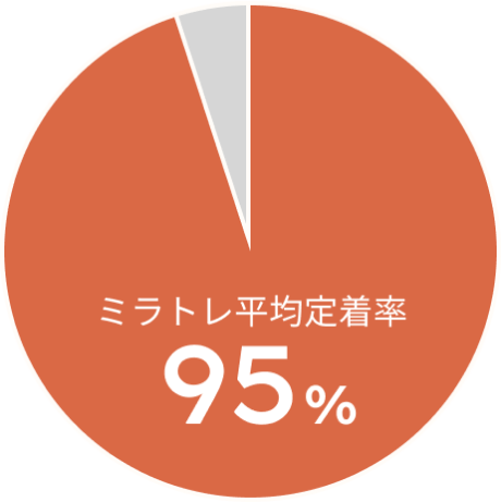 ミラトレ卒業生の職場定着率(半年間)は95%※1で、 その大半は精神障害のある方です。