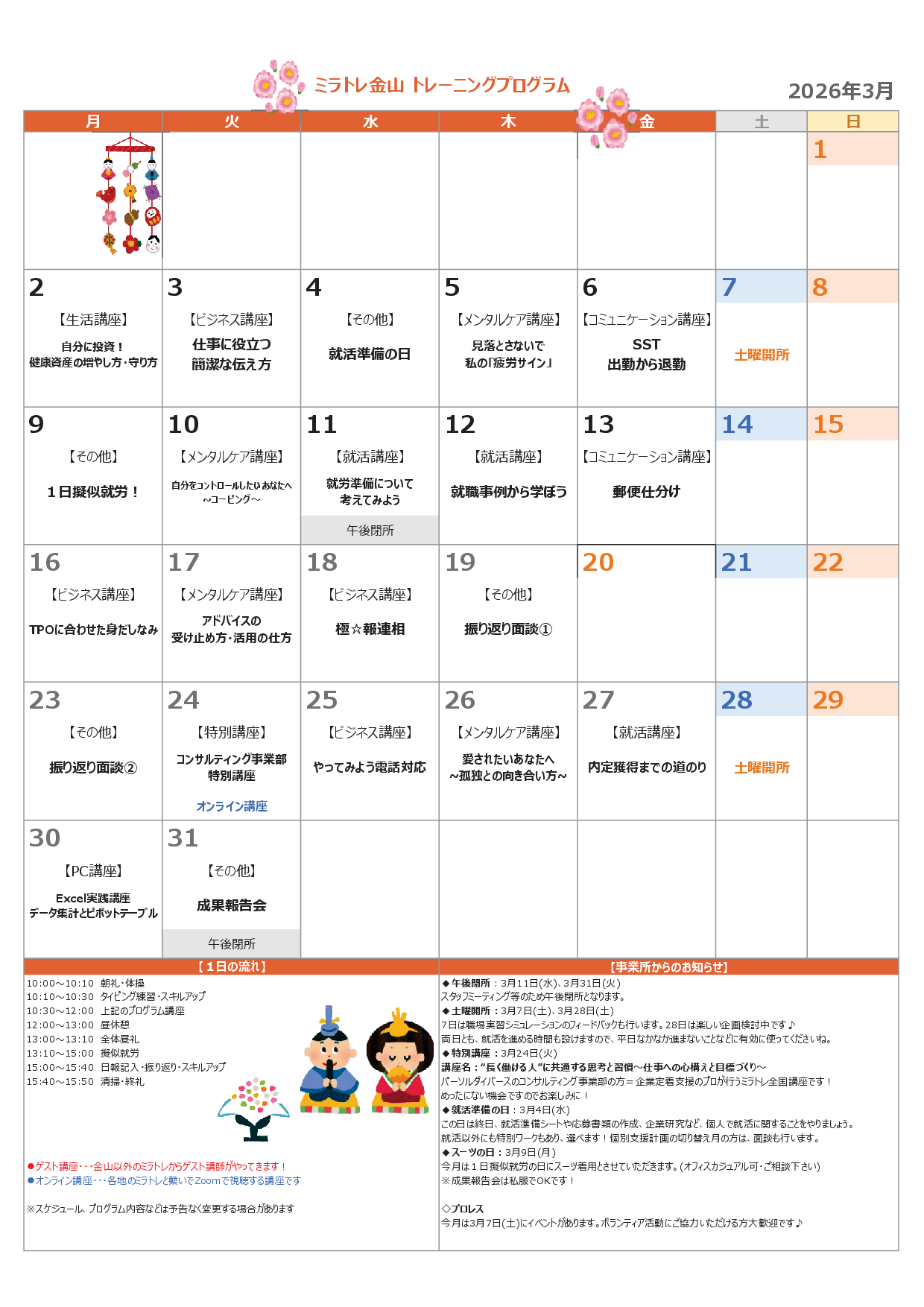 ご興味のある講座がございましたら、お問合せの際にお知らせください。