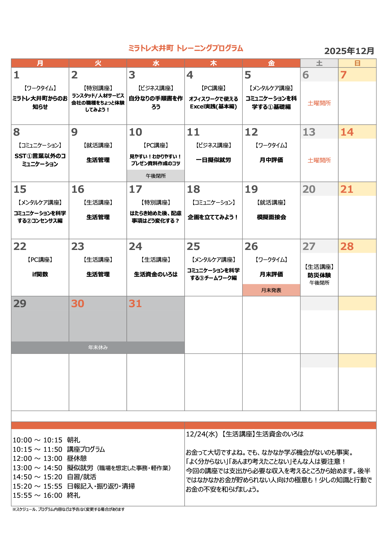 ミラトレでは、ビジネススキルばかりにとらわれず、就職の先にある充実した社会生活のために必要なヒューマンスキルに重きを置いて、自らの力で歩んでいけるよう支援を行っています。是非見学にいらしてください。