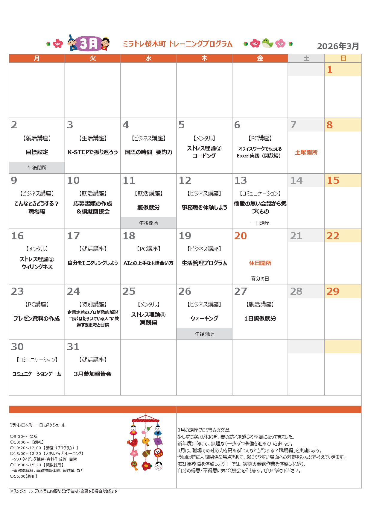 今月のプログラム日程をご覧いただけます。 ご興味のある講座がありましたらご見学も可能です。事前に下記よりお問い合わせください。