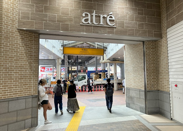さらに直進するとatreの表示の先を右折し、ガード下を進む