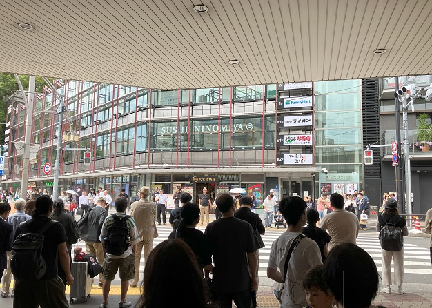 そのまま進むと右手に交番があるので通過し、右前方の横断歩道を渡る