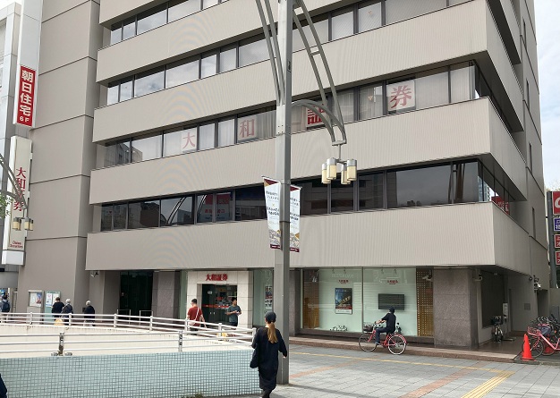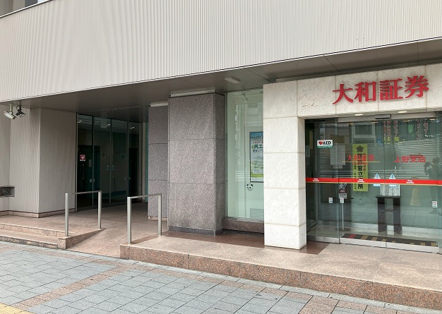 大和証券の左手にビルへの入口(自動ドア)があり、館内のエレベーターで4階へ上がる