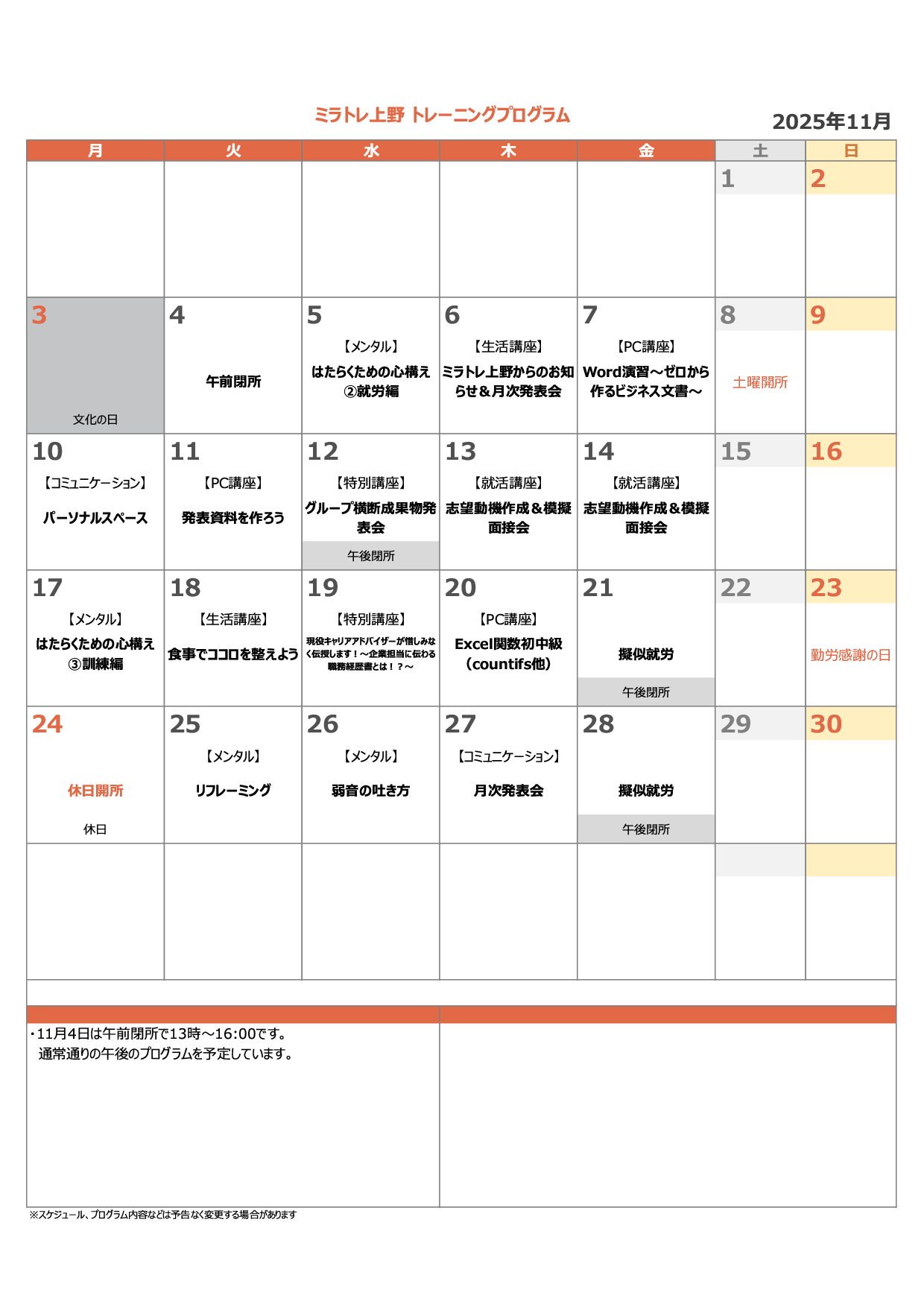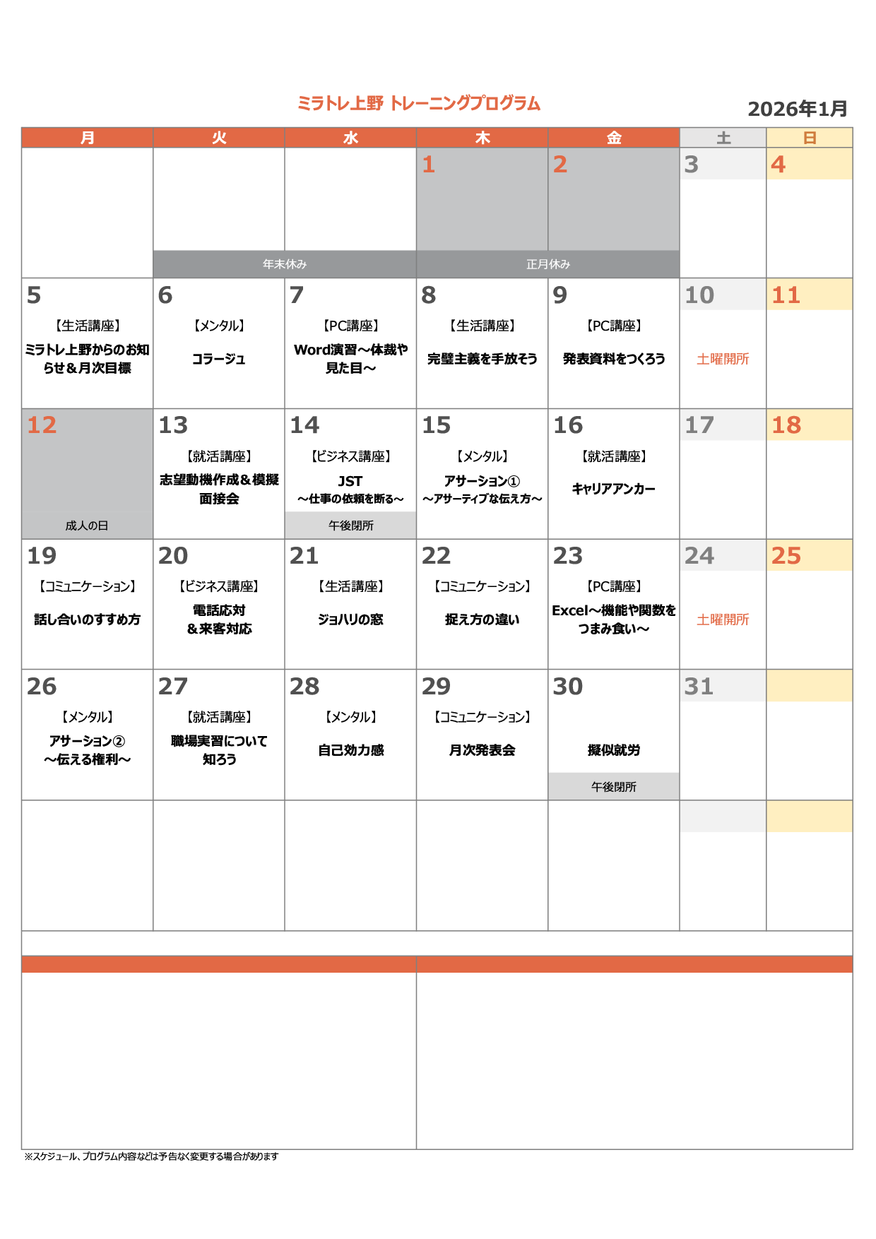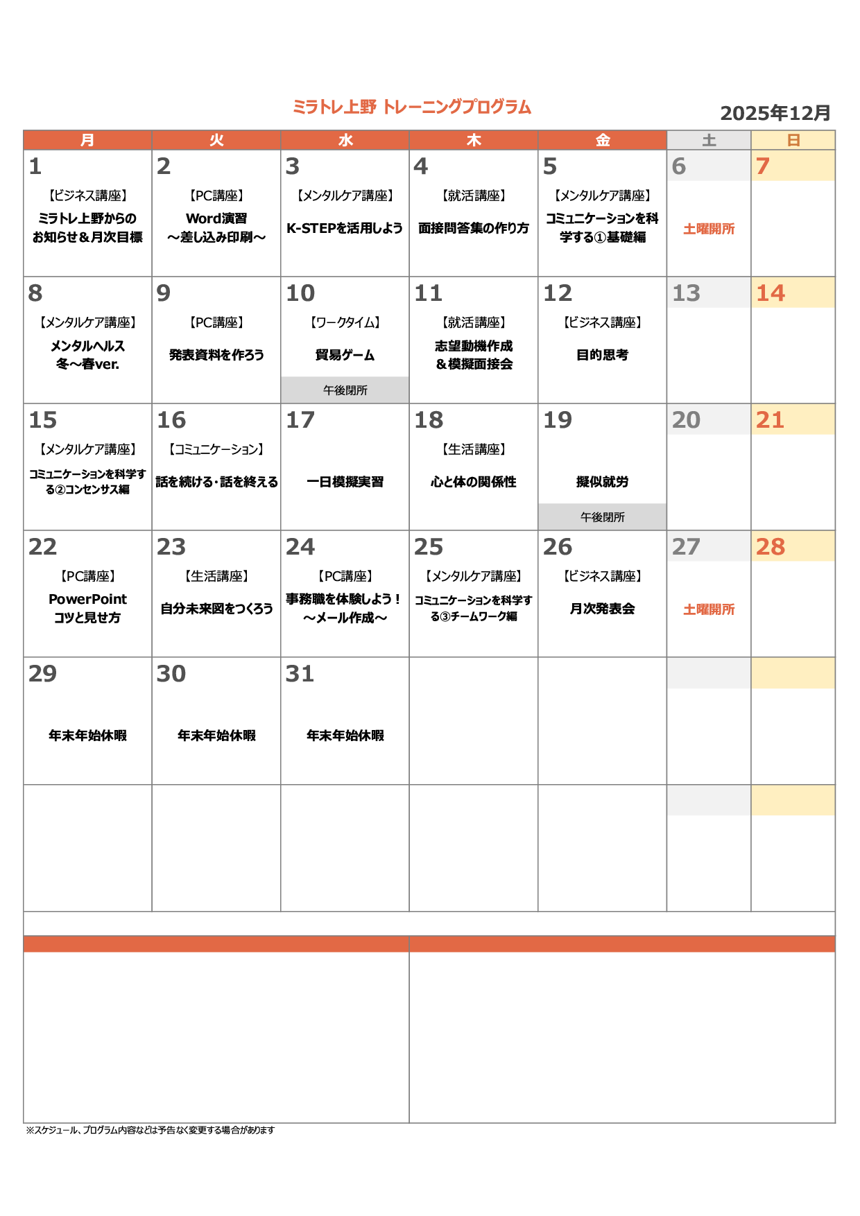 ミラトレ上野では、ビジネスや就職、コミュニケーション等、多数の講座を通じての知識習得と、午後の時間を使って実践的な経験の積み上げを継続いただけます。気軽に見学にきてくださいね!